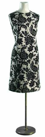 Late 60's black and white print brocade lame' sparkle dress, with silk-rayon lining.